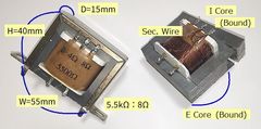 此のトランス、ワニスが少ないので、鉄芯の E-I 組み換えに チャレンジ中です。
