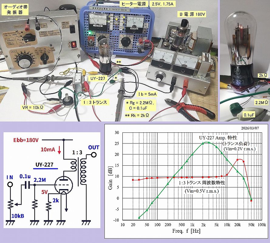 また、3月8日の評価条件は UY-227 の Ib=10mA (Rk=2kΩ) でしたが、